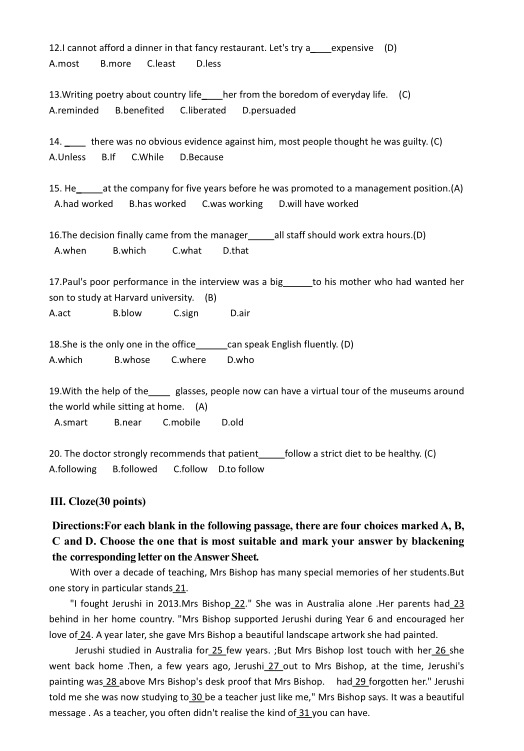 答案由考生回忆,可能会存在偏差,仅供参考!后续也会不断更新